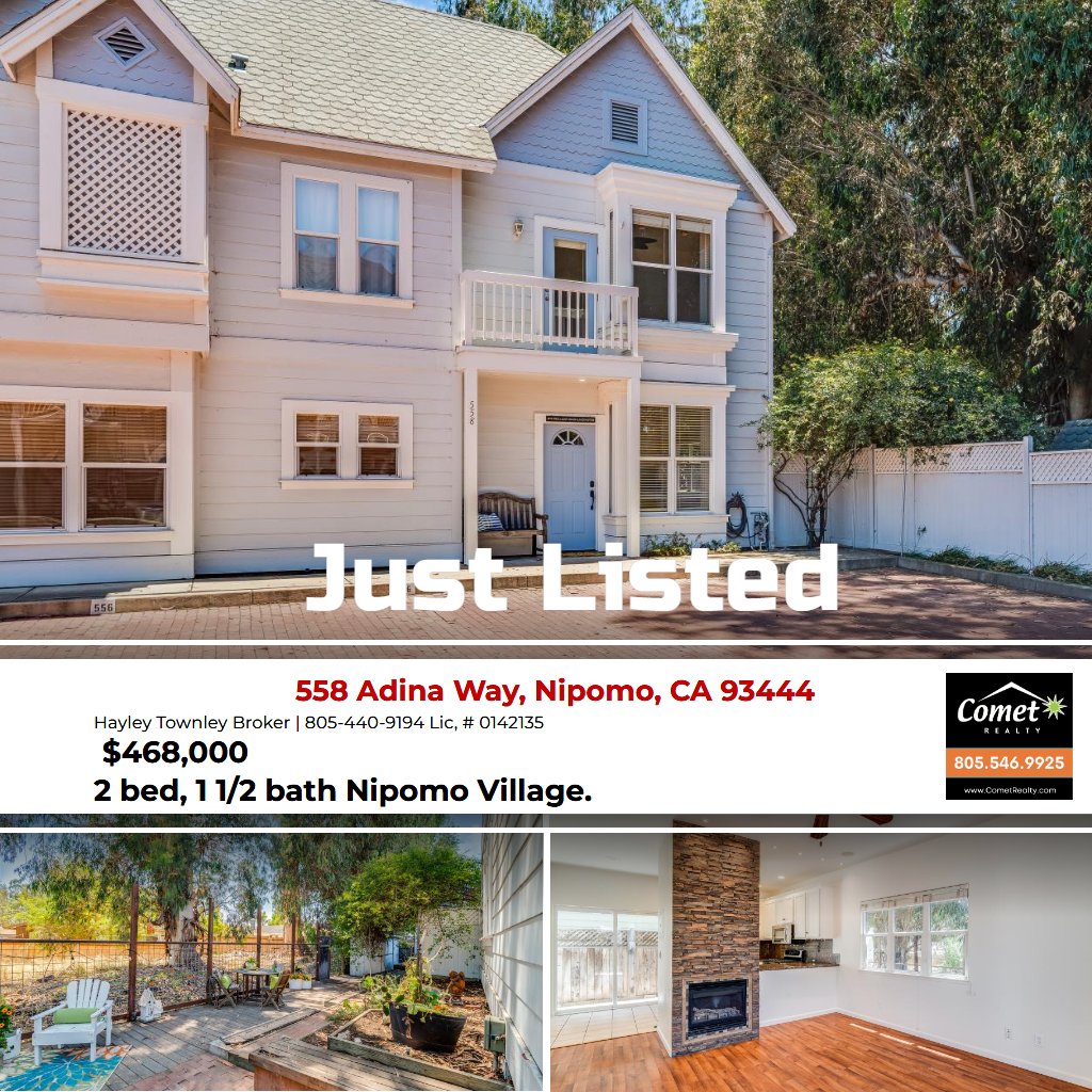 Nicely updated 2-bedroom, 1.5-bath end-unit townhome in desirable Nipomo Village! Tucked beside open space and shaded by majestic eucalyptus trees, this thoughtfully remodeled PUD offers peaceful living with a private feel. The light-filled interior features hard surface flooring (laminate and tile), granite countertops, stainless steel appliances, and a cozy fireplace in the living area. Upstairs, you’ll find two bedrooms—one with built-in shelving, and the spacious primary with a bay window storage bench, custom closet organizer and a private balcony. The remodeled full bath includes a beautiful travertine step-in shower, and the upstairs laundry closet has a convenient stackable washer and dryer. Enjoy outdoor living under the trees with space to garden, dine, or relax. The community also offers a park-like green space and easy access to local shops, restaurants, and all the best of the Central Coast lifestyle. Why rent when you can own?